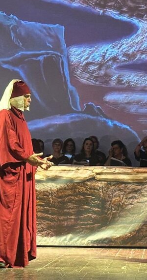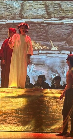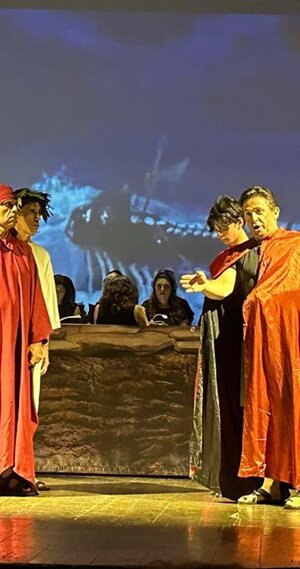 Messa in scena del 31.05.2024 - Teatro Tina di Lorenzo di Noto (SR) - Interpreti: Dante, Mario Gandolfo; Virgilio: Luigi Gandolfo; Beatrice: Francesca Rollo; Caronte/Ugolino: Gabriele Gandolfo; Messo: Mariagrazia Cavallaro; Capaneo/Ulisse: Seby Zappulla; Francesca da Rimini: Annarita Terrazzano; Le Erine: Annarita Terrazzano, Nerina Maugeri, Francesca Rollo. Coro: Giuseppe De Cicco, diretto da Maria Carmela De Cicco.