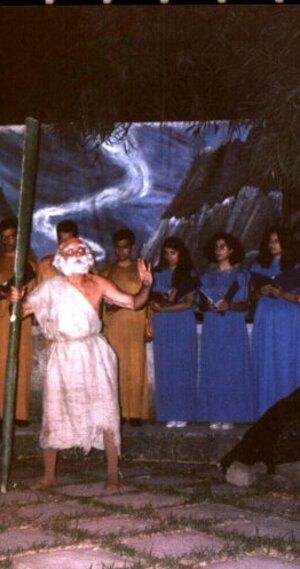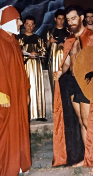 Messa in scena del 1996 - Teatro all'aperto Rose di Gerico, Cannizzaro (CT) - Interpreti: Dante, Mario Gandolfo; Virgilio: Salvatore Rigano; Beatrice: Nerina Maugeri;